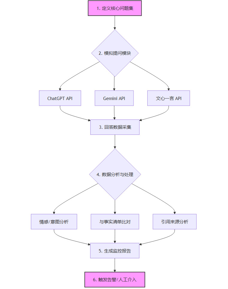 模拟提问模块:通过脚本调用各大AI平台的API,实现高频、自动化的提问。