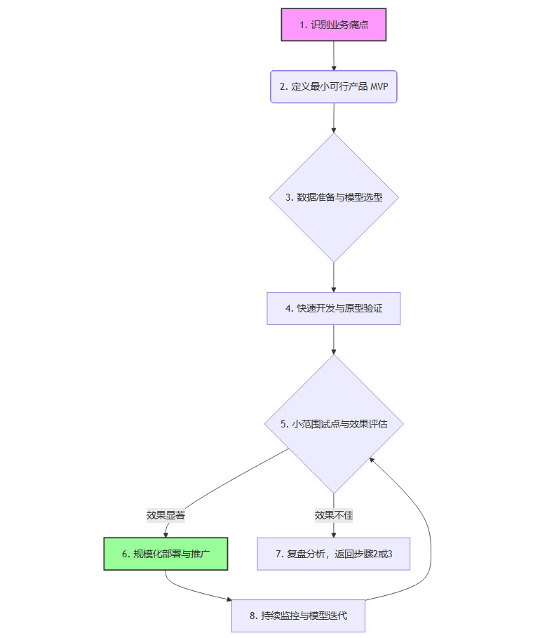 选定场景后,切忌追求一步到位的“完美”解决方案。AI项目具有高度的不确定性,采用“小步快跑、快速迭代”的敏捷方法论至关重要。